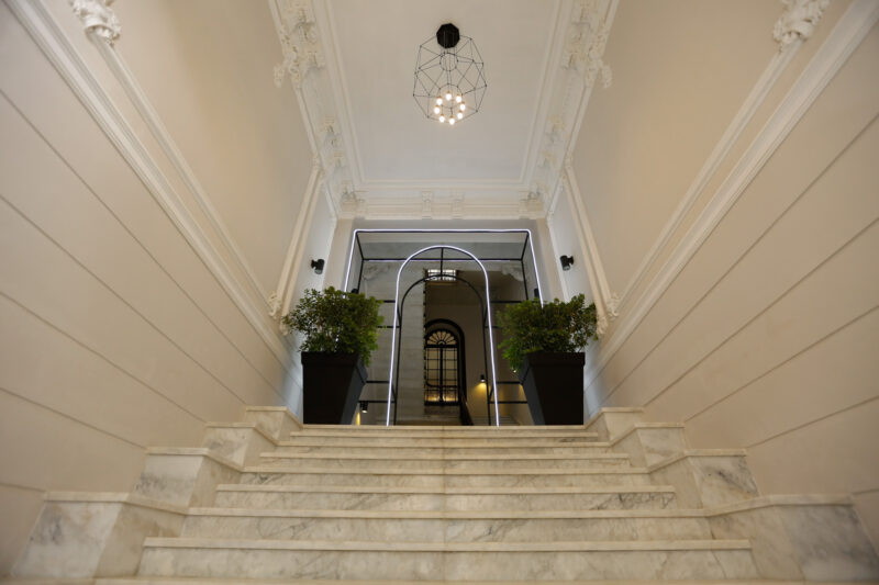 كما اشتملت عملية الترميم واجهات المبنى وإعادة هيكلة الطوابق؛ بإستخدام مواد صديقة للبيئة تحد من استهلاك الطاقة.